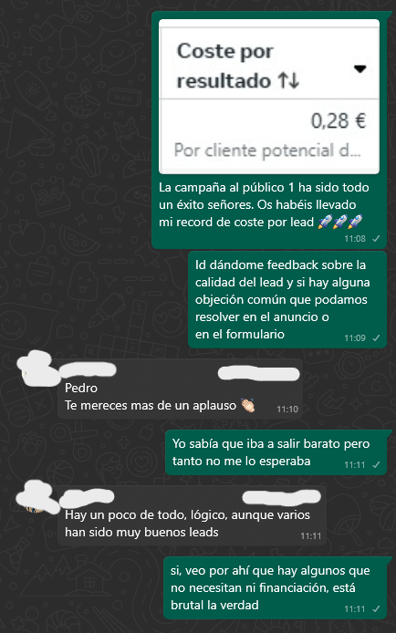 Conseguimos volumen y calidad, retornos increíbles con presupuestos en publicidad incluso muy por debajo de los 1000€.